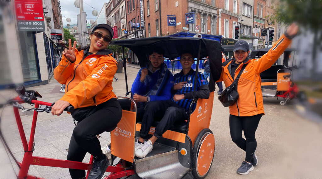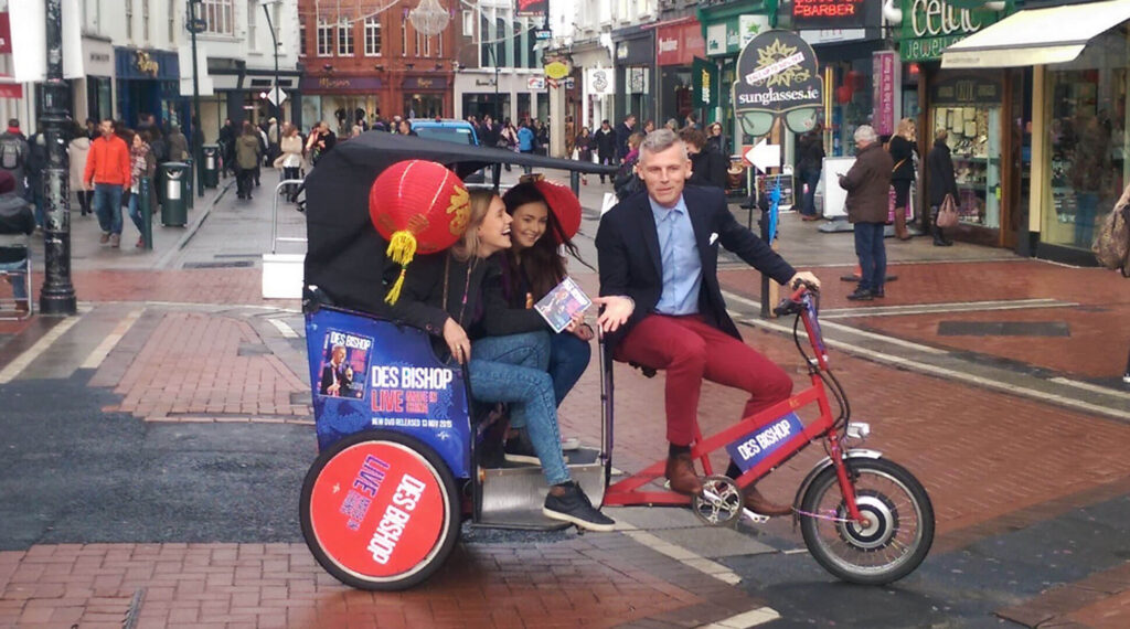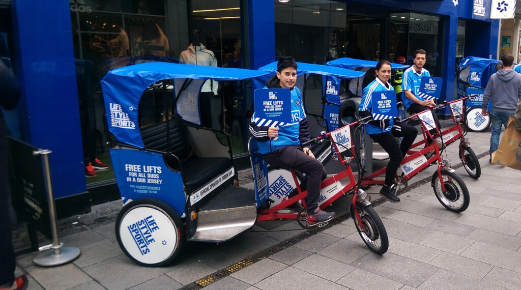 Our Pedicabs service is ideal for short distance shuttling of people at sporting events, large trade fairs, promotions and parades
